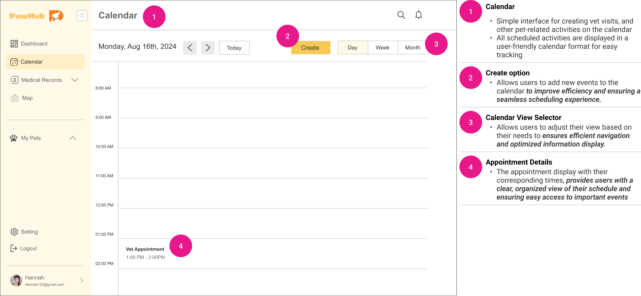 This intuitive calendar interface enables users to create and manage appointments, vet visits, and other pet-related activities. Scheduled events are presented in a user-friendly calendar format, making it easy to track, view, and edit them.